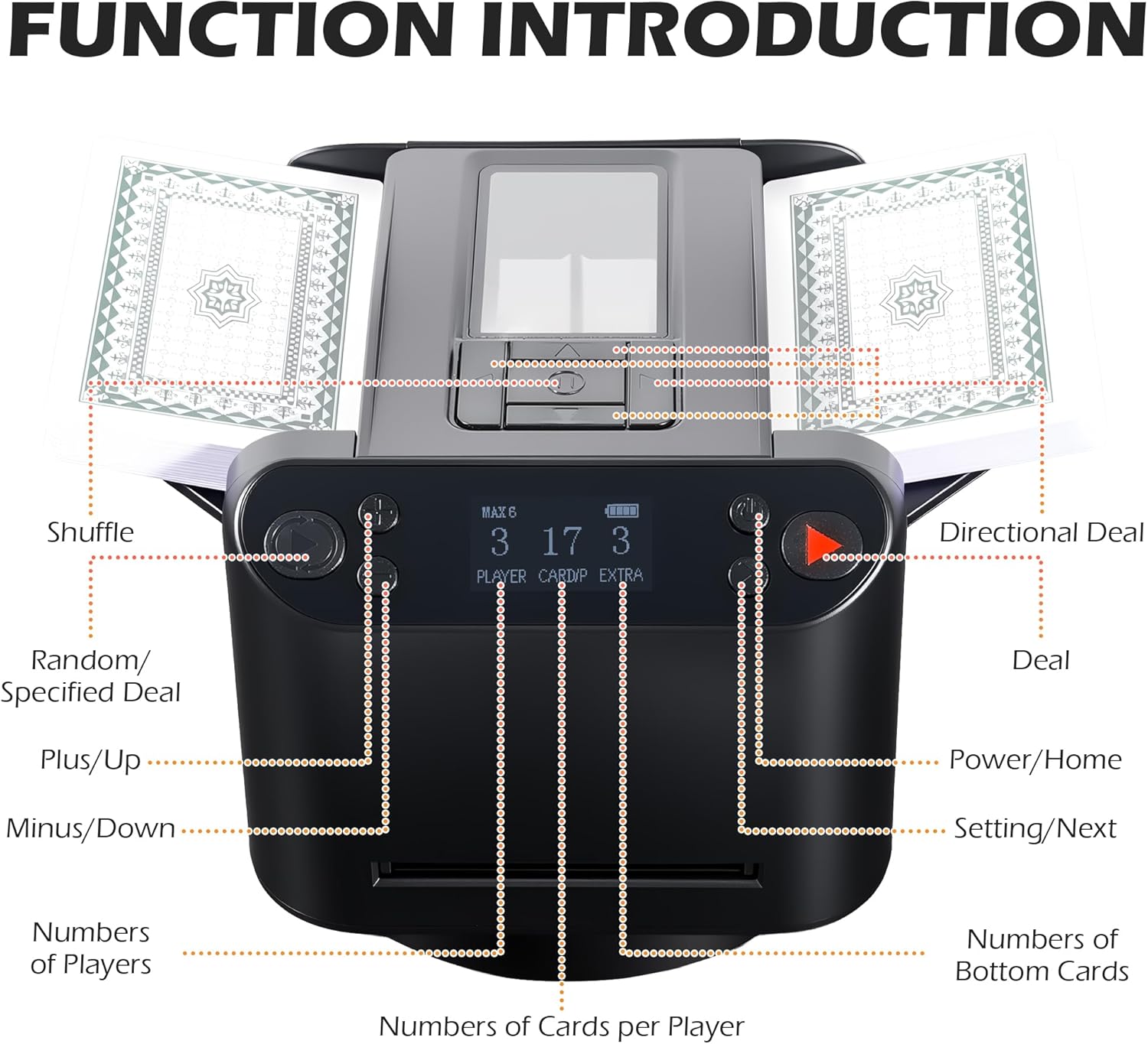 Built with a sturdy, modern design and easy-to-use controls 🖥️👌, this card shuffler/dealer is ideal for: