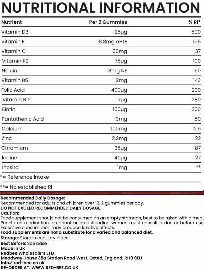 Give your body the daily nourishment it deserves with Red Bee Supplies Multivitamin & Mineral Gummies — a delicious and convenient way to support your overall health, immunity, energy, and vitality 🍊✨💛