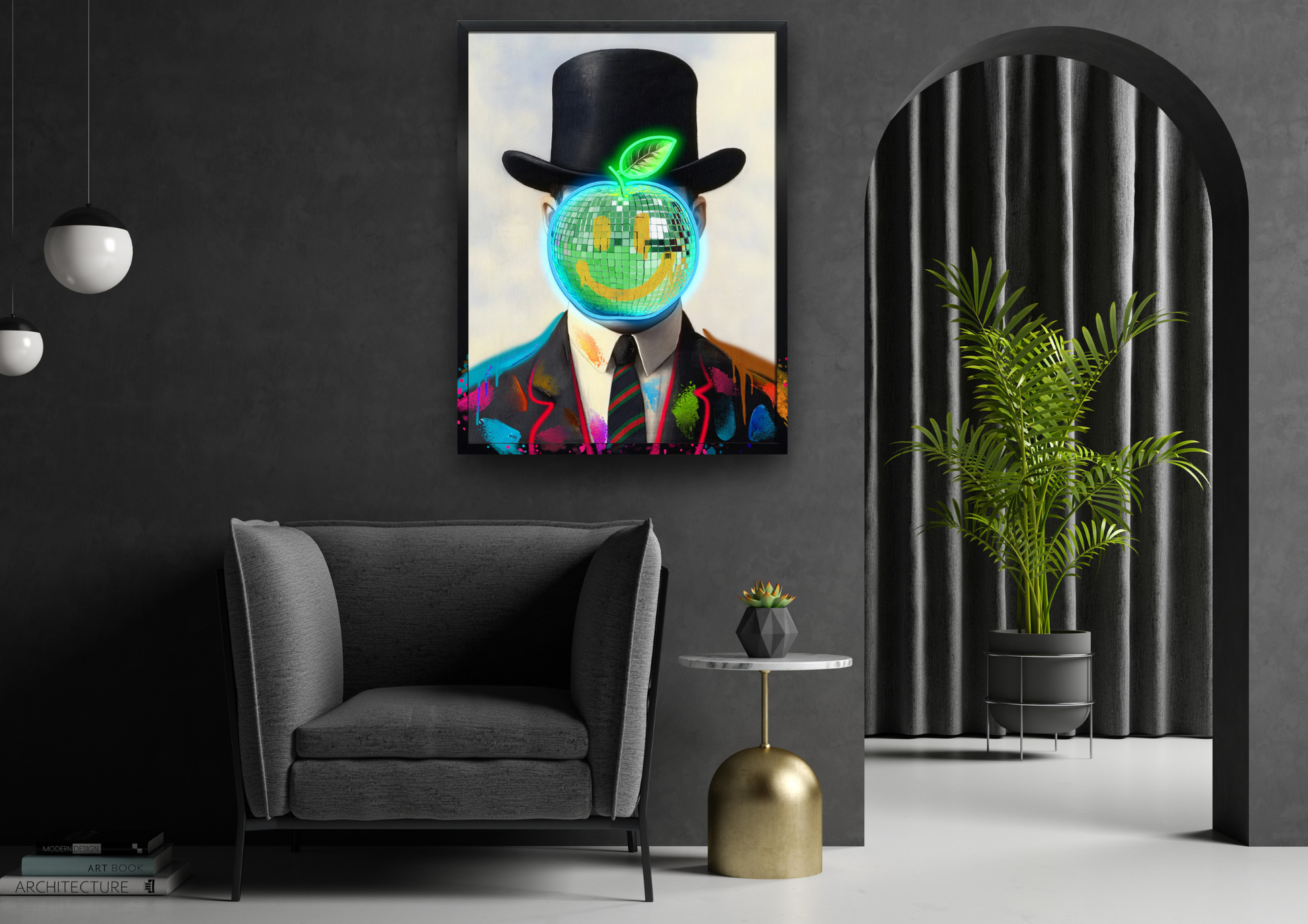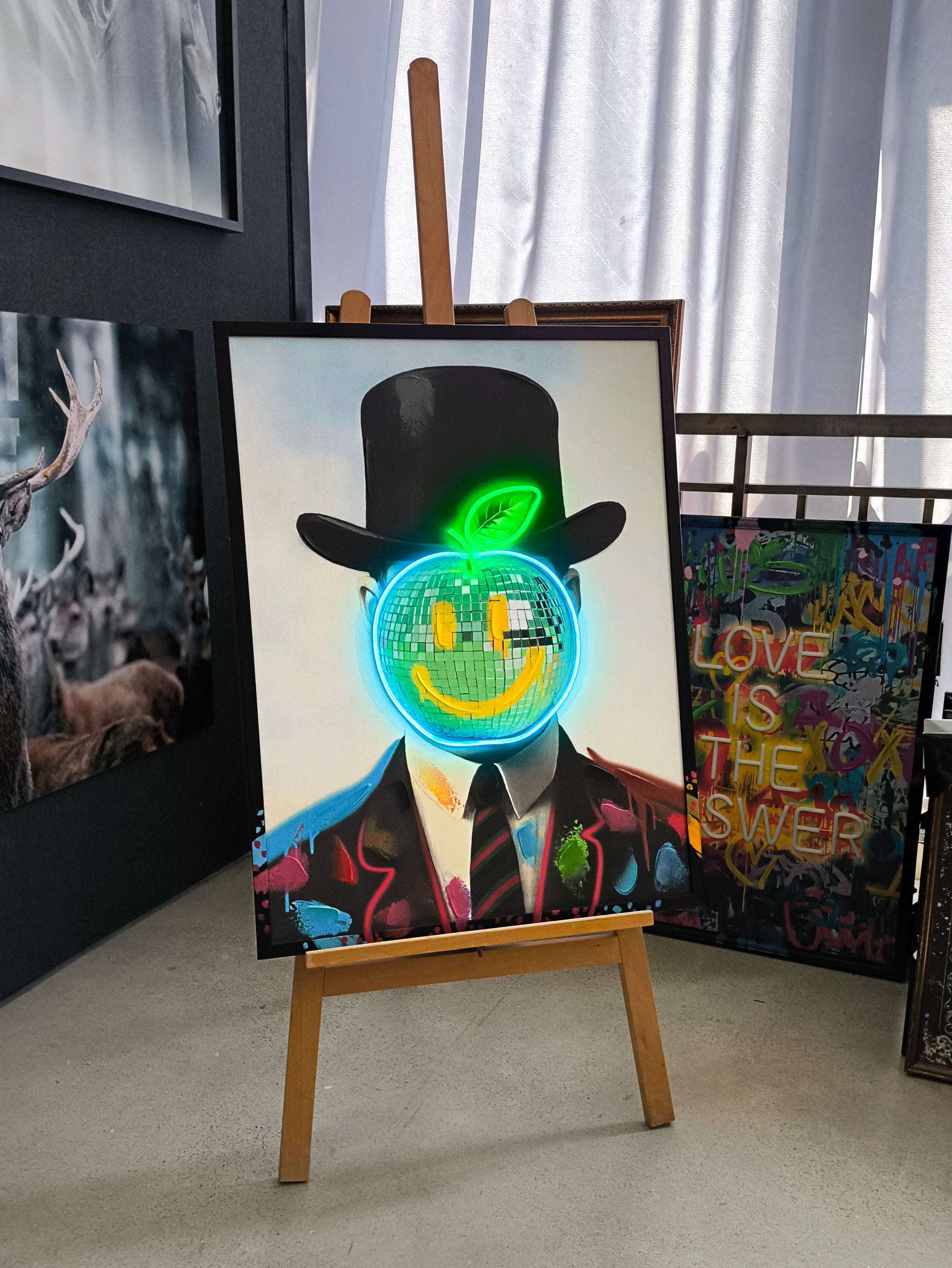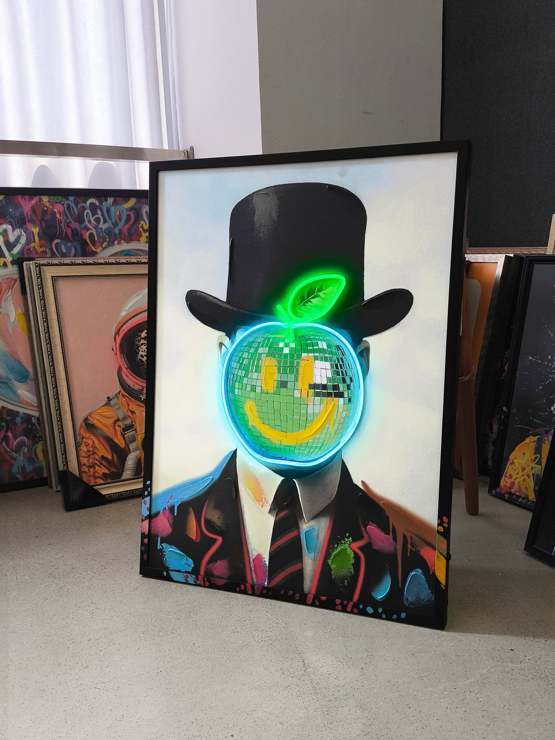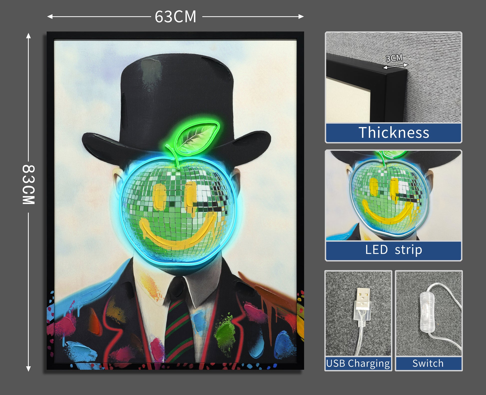 Neon Gentleman LED Wall Art – Disco Apple Canvas (63x83cm)