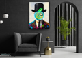 The combination of retro style and modern LED lighting gives this artwork a bold, thought-provoking presence. With its vibrant green and blue LED glow, it radiates both sophistication and fun — a perfect blend of art and attitude.