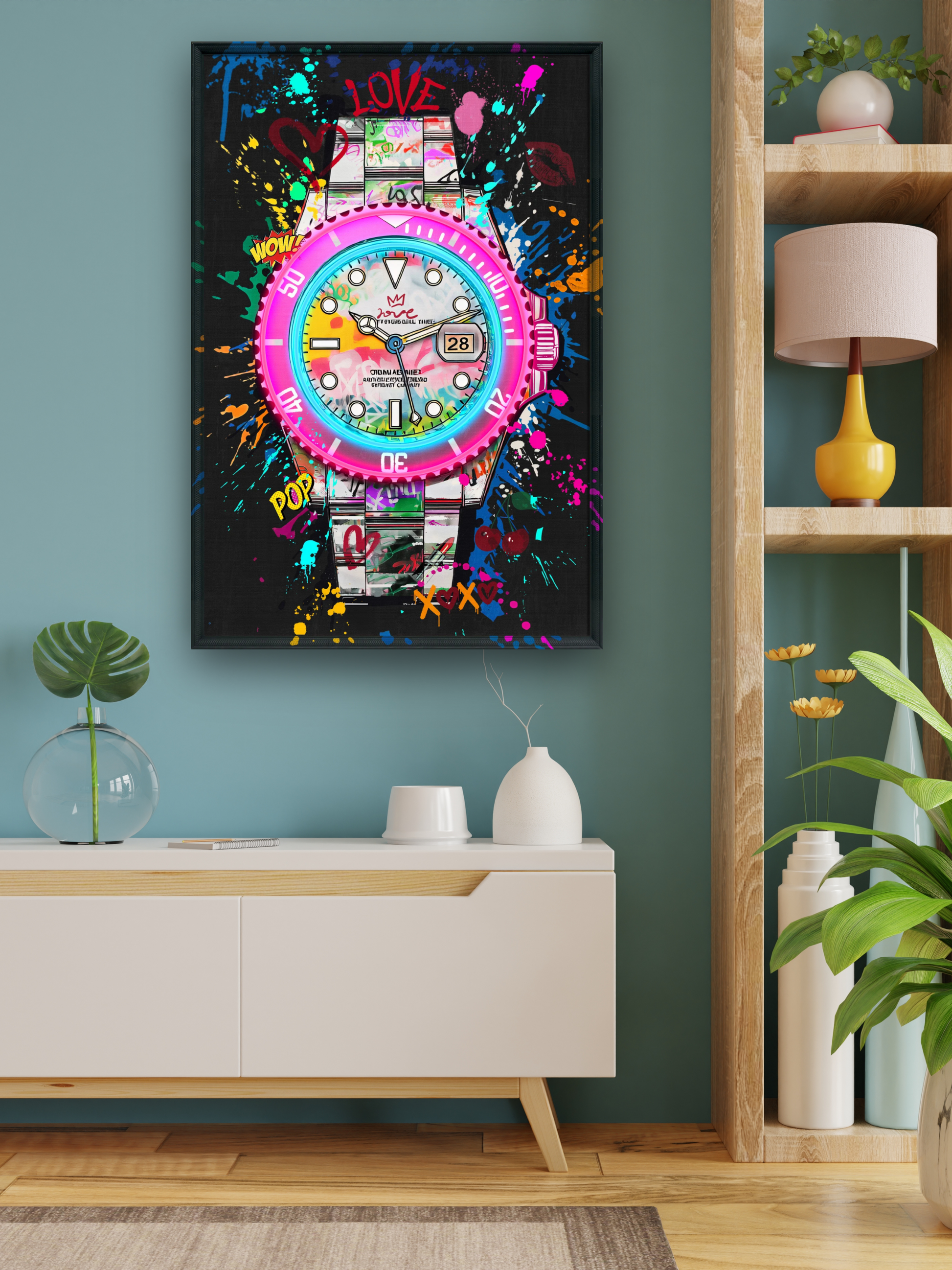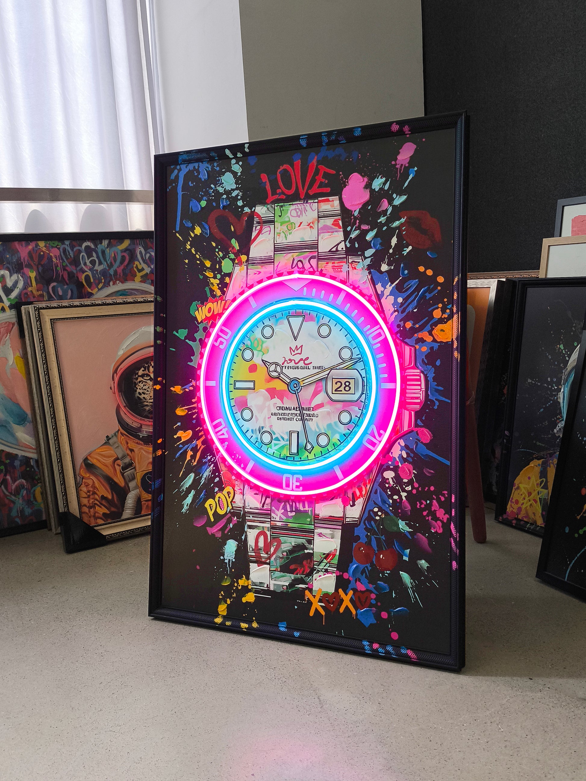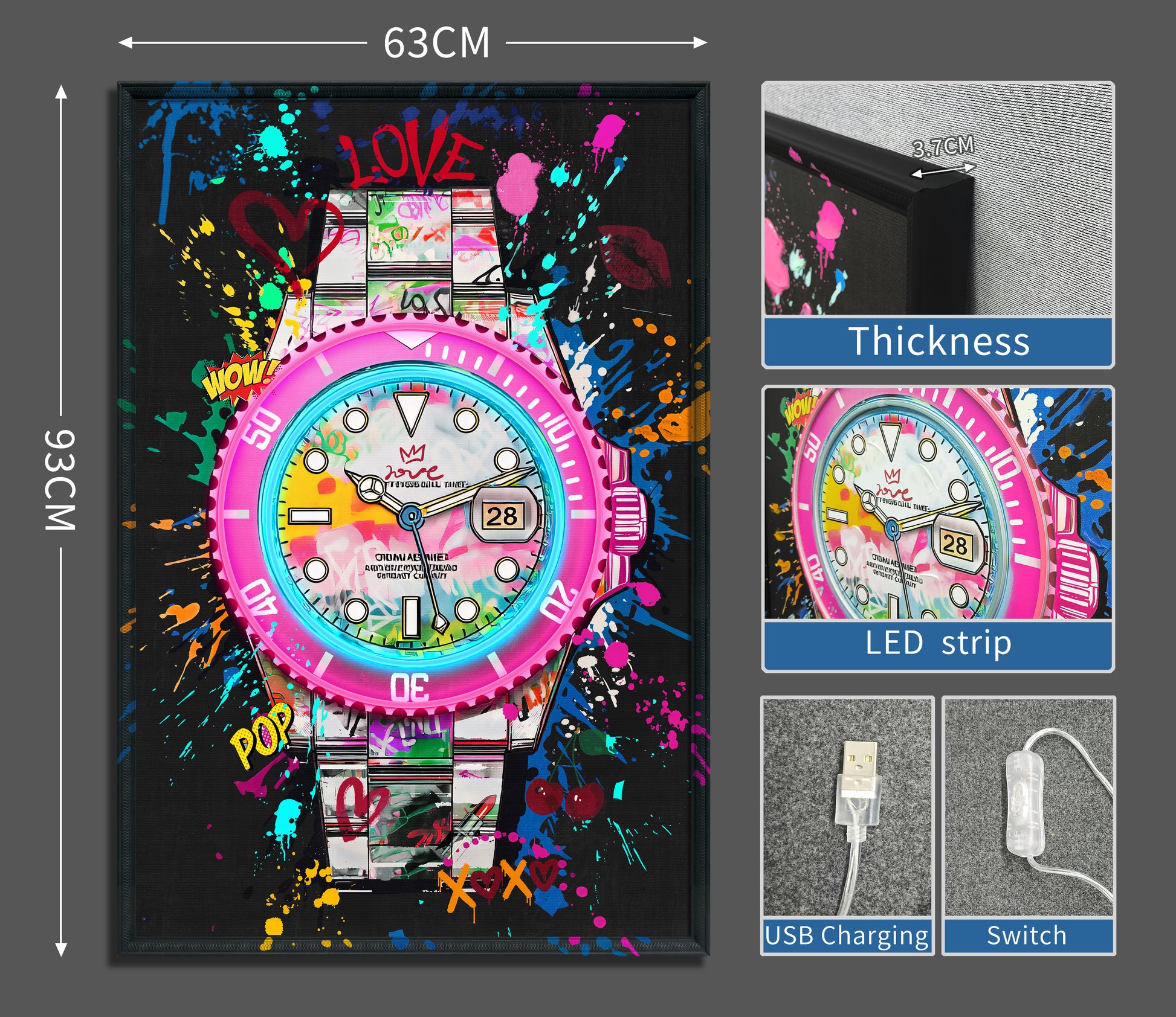 Turn up the color and creativity with the Pop Love LED Wall Art. Featuring a luxury-inspired watch surrounded by graffiti-style splashes, love hearts, and comic pop art details, this piece captures the perfect blend of glamour, energy, and emotion.